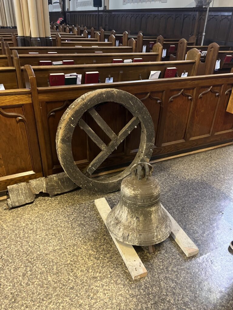 This past week, the bell that hung in the tower since the church was built in 1845 was lowered. The bell from 1806 now rests on the main floor of the church. The current restored bell remains in the tower and rings every day at noon, 6:00pm, and ten minutes before each weekend mass. There will be guided tours of Assumption Church on September 10th, 24th and October 8th, 2025 at 7:00pm.