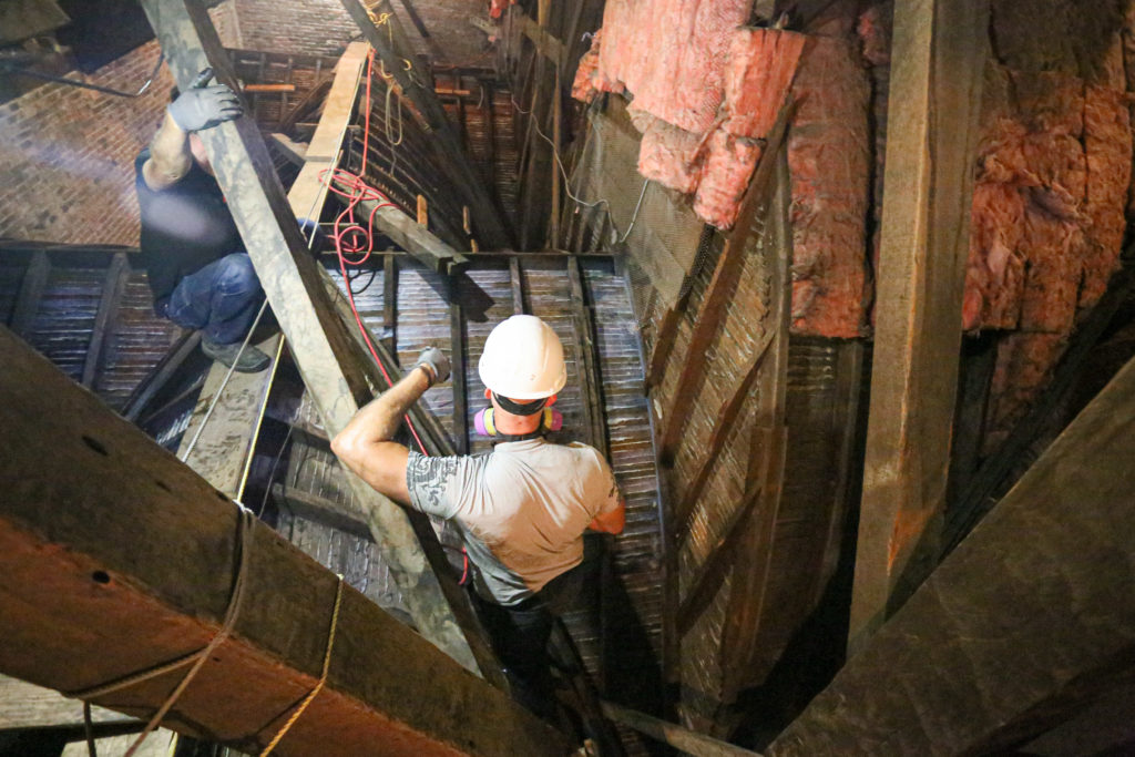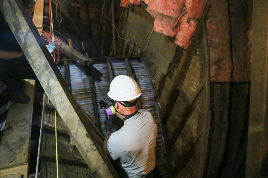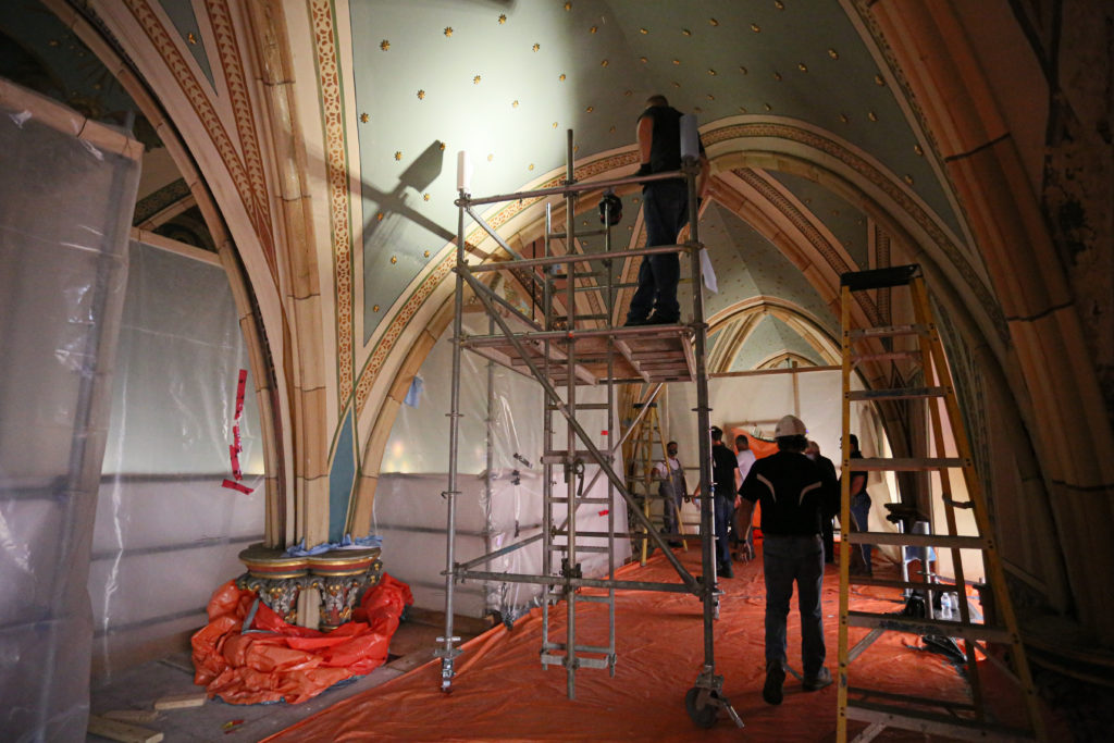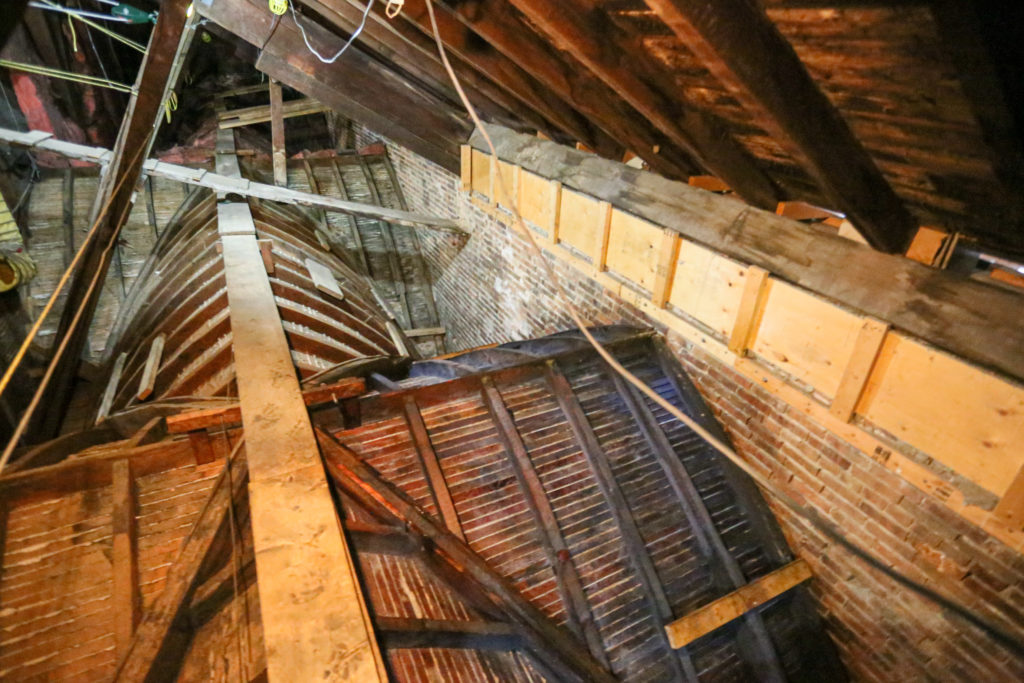 Looking into one of the ceiling’s groin vaults. In some of the vaults, more than 4 feet of debris was removed that had collected over the years.