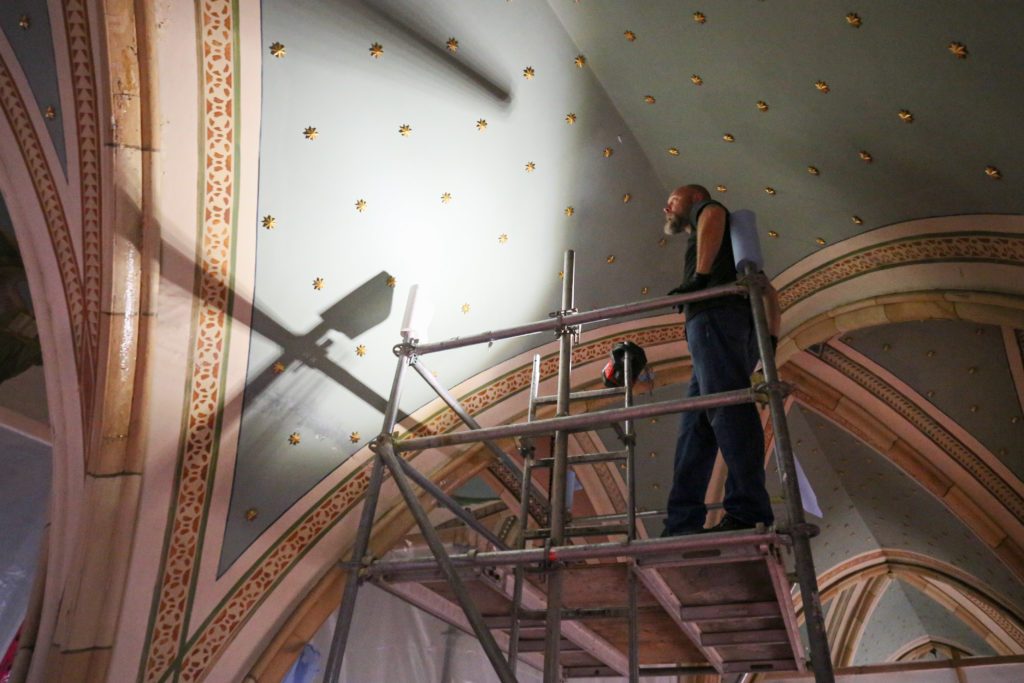 Consolidation of the ceiling plaster has started during Phase 2 of restoration work on Assumption Church.