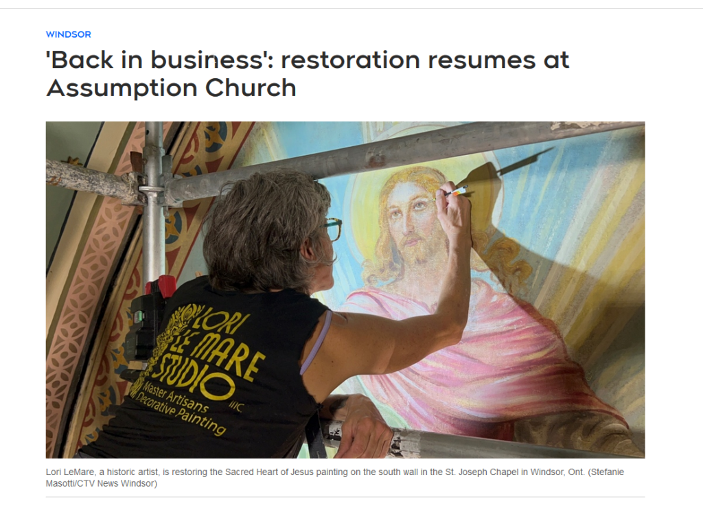 Stefanie Masotti from CTV News Windsor paid a visit to Assumption Church on Tuesday for an story on the ongoing mural restoration work.