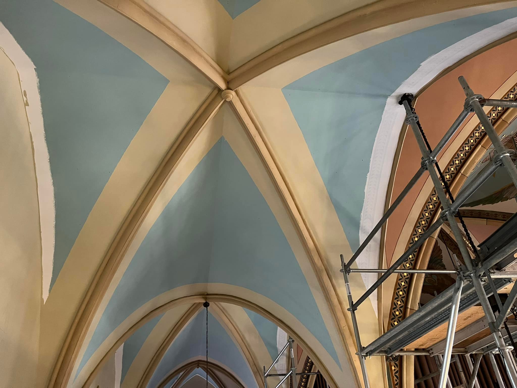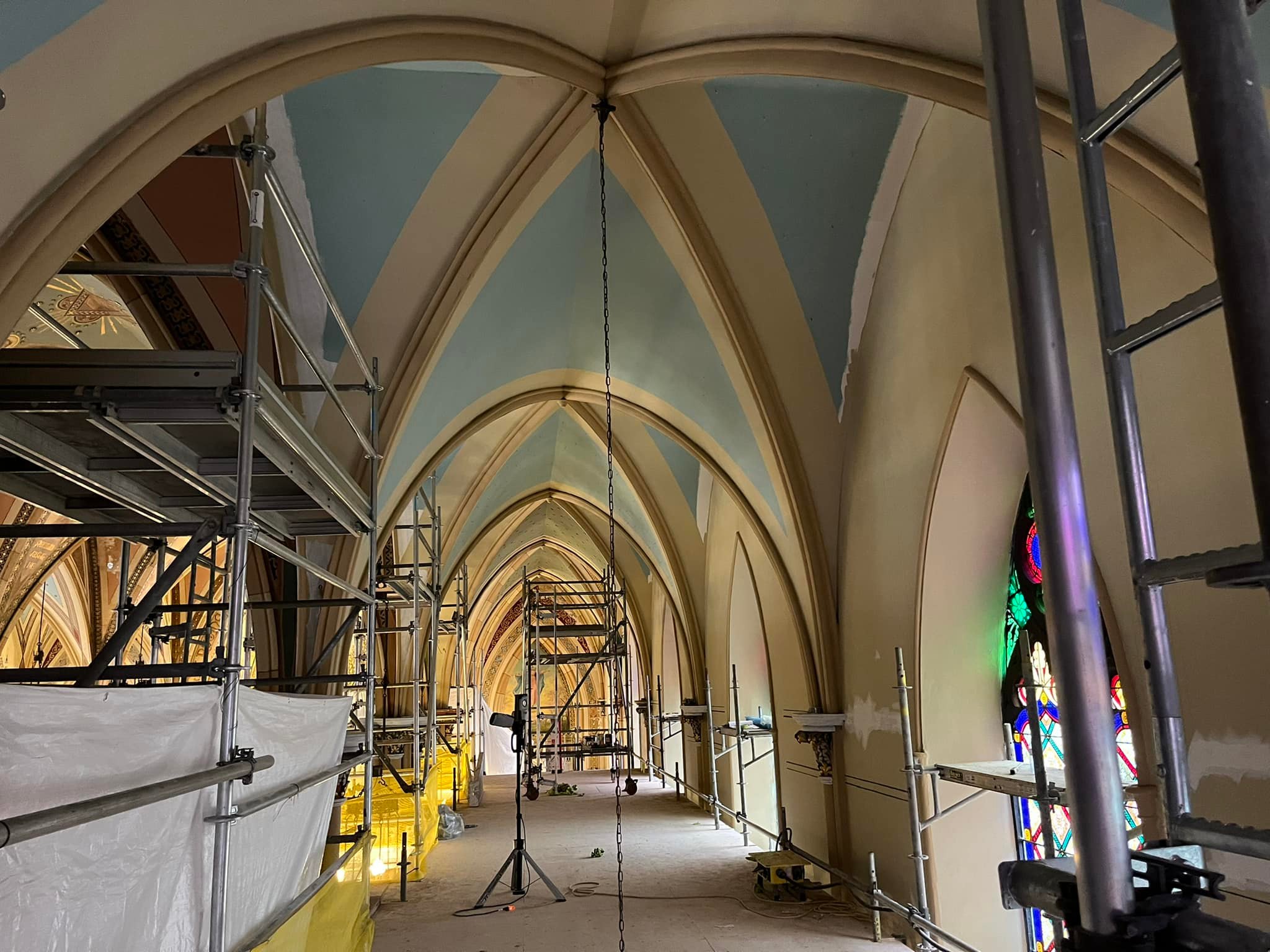 Paining has started on the west side of Assumption Church. This work is expected to last until after Labour Day,