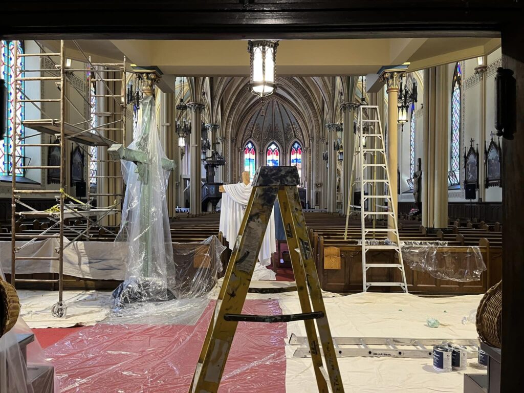 This week contractors have been working on painting under the choir loft and main entry.