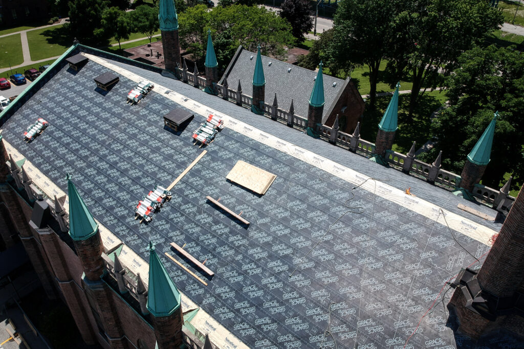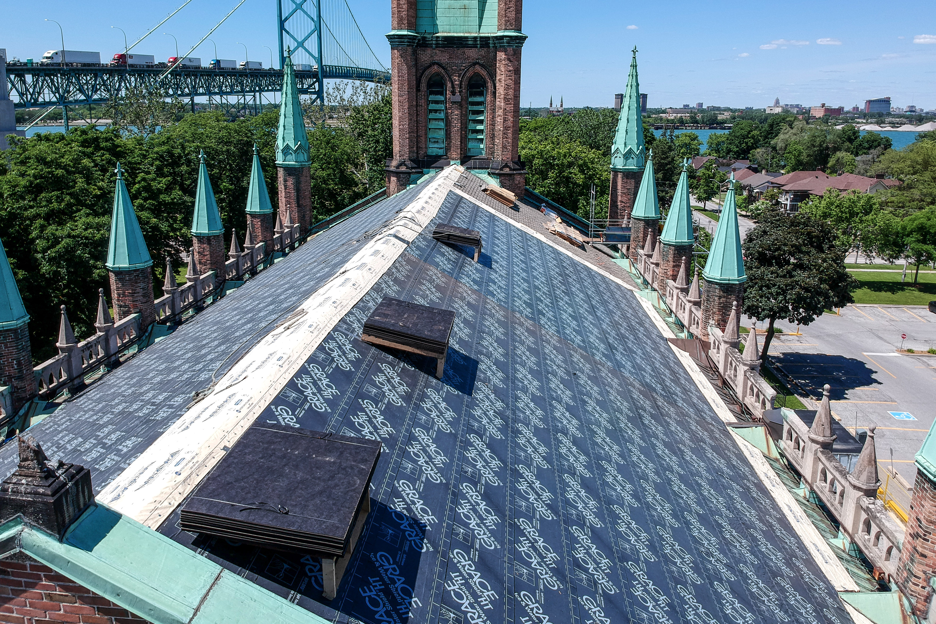 The installation of the copper shingle roof is slated to start in early July with the roof completed by mid-July, weather permitting.