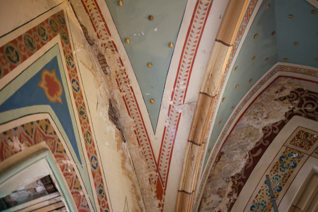 Plaster consolidation has finished in the ceiling of Assumption Church.