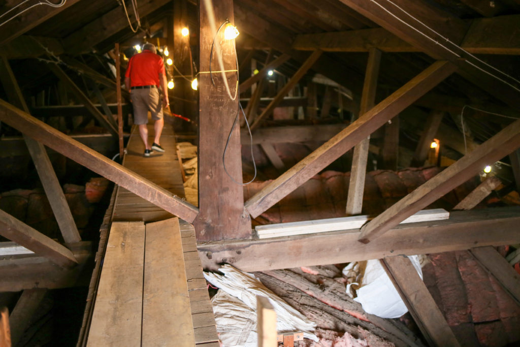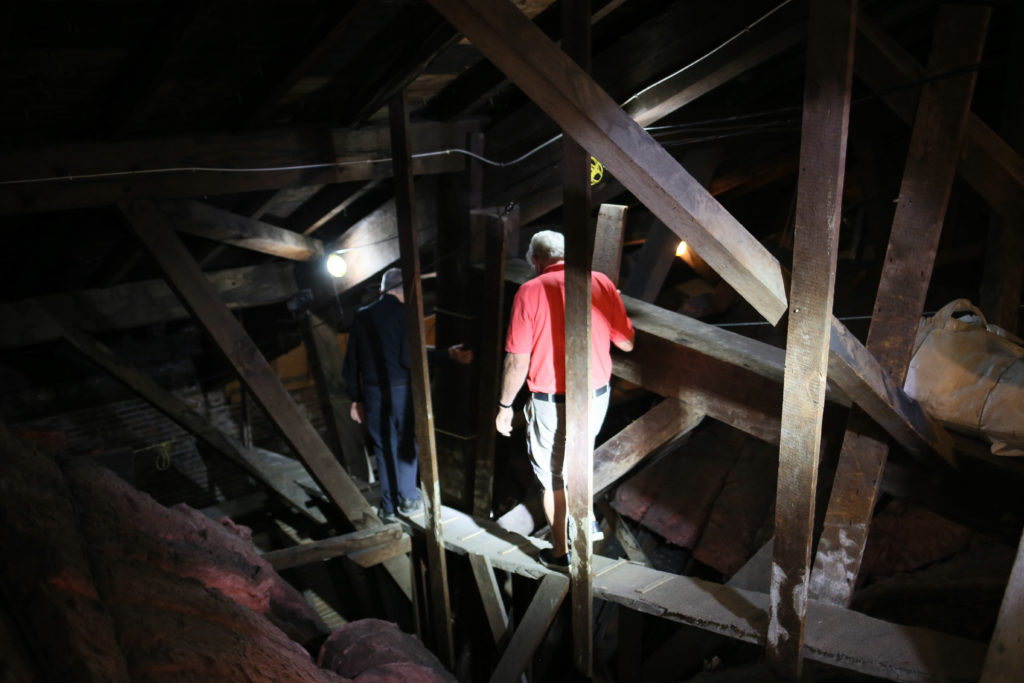 This hole leads to the area over the sanctuary. The sanctuary was added in 1928. -