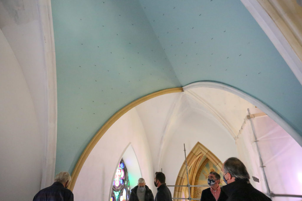 Workers from Star Plastering have completed plaster work on the ceiling of Assumption Church. Painting has now started.
