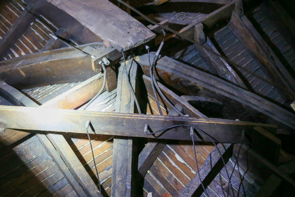 Masse Electric will be removing old knob and tube wiring from the attic and will be installing new wiring to power smoke alarms and ceiling light fixtures. -