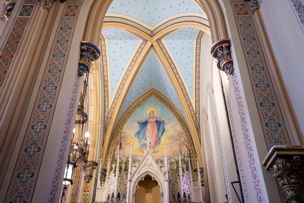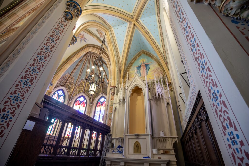 This week contractors removed the scaffolding from the west side of the church (Mary’s Altar). The area is being cleaned up and next week the altar and statues will be put back into place.