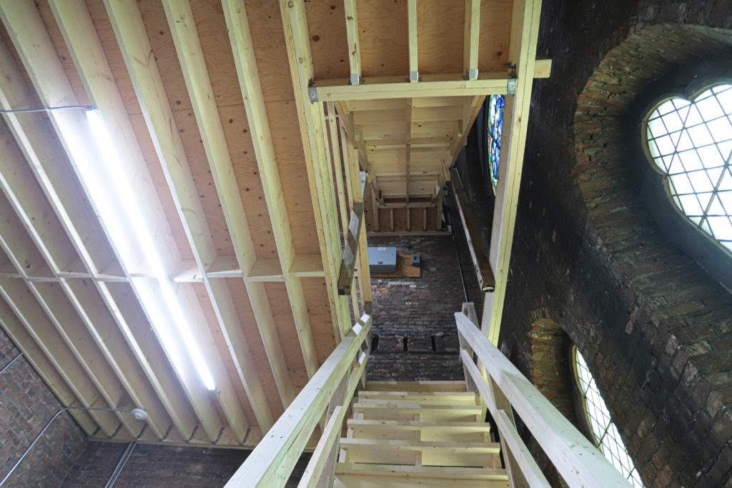Over the last several months contractors have been constructing a staircase in the bell tower behind the organ.