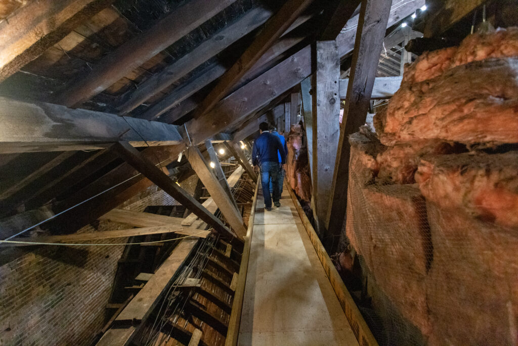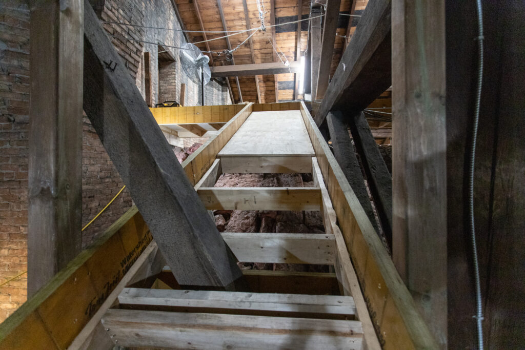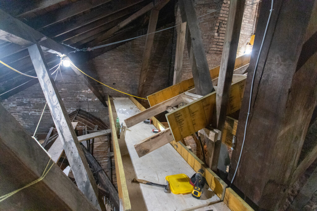 Work in the attic on the west side of Assumption Church continues. Our General Contractor Pupatello and Sons are just about finished the new catwalk system.
